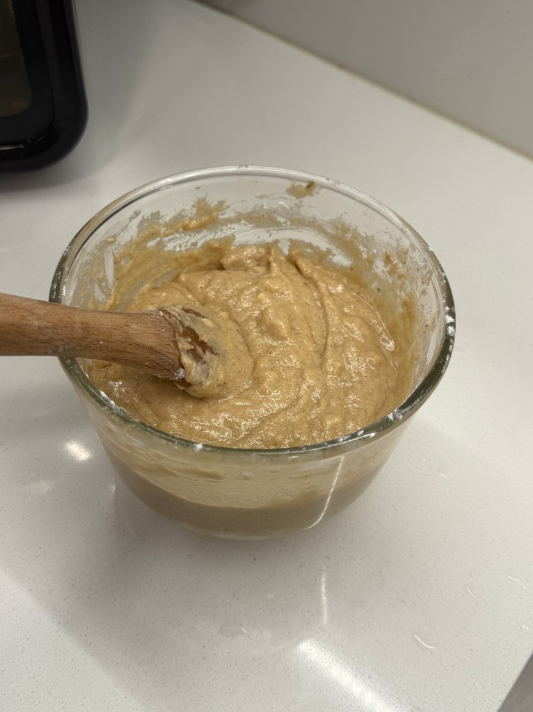 - Add the pumpkin purée, melted coconut oil, maple syrup, and vanilla extract to the mashed bananas. Whisk until well combined.